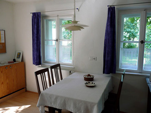 Im Erdgeschoss gibt es eine große komfortable Wohn-/Essküche mit Schlafsofa, ausgestattet mit Kaffeemaschine und Toaster.