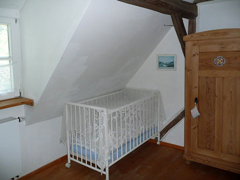 Eines der beiden Zimmer ist nicht separat und somit bestens für Familien mit Kindern geeignet. Ein Kinderbett und ein Hochstuhl sind vorhanden.