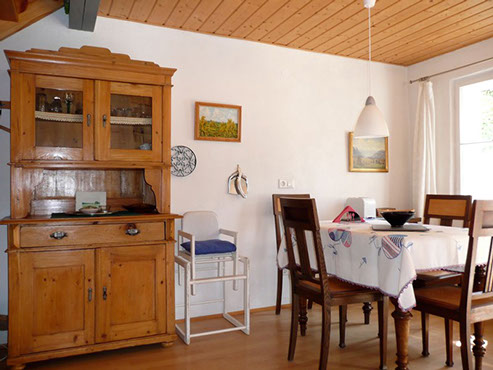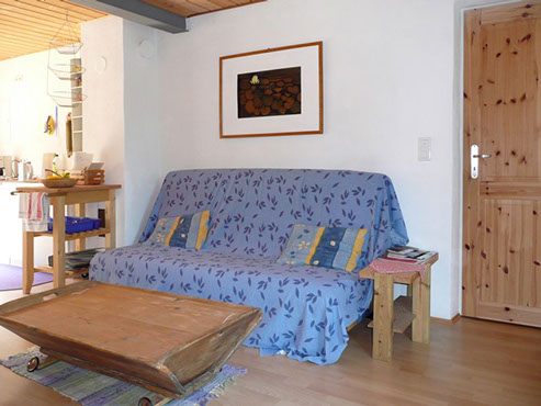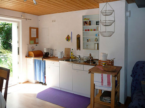 Aber Sie dürfen gerne noch jemanden mitbringen. Im Erdgeschoss befindet sich eine große, gemütliche Wohn-/Essküche mit Schlafsofa, ausgestattet mit Kaffeemaschine und Toaster.