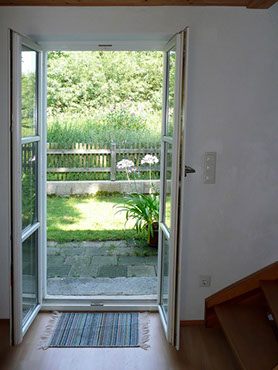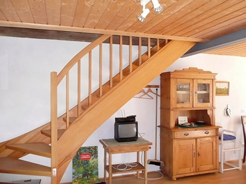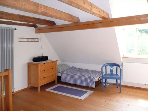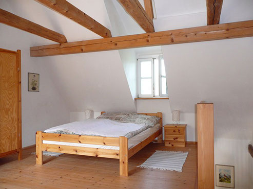 In der 1. Etage (Dachgeschoss) ist ein geräumiges Doppelzimmer mit Gästebett.